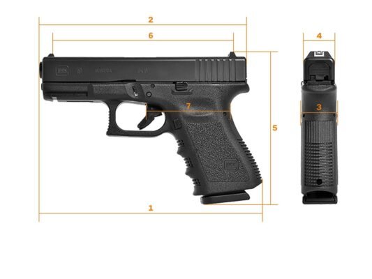 Glock 19 compact is Glock’s most popular firearm. The G19 has gained popularity over the years for its safety features, accuracy, and capacity – it can hold up to 15 rounds in the magazine and one round in the chamber. Glock uses a “safe action” trigger system that consists of three independent safety mechanisms designed to help prevent accidental discharges if dropped. Glock 19s are available with a magazine capacity of either 13 or 15 rounds.